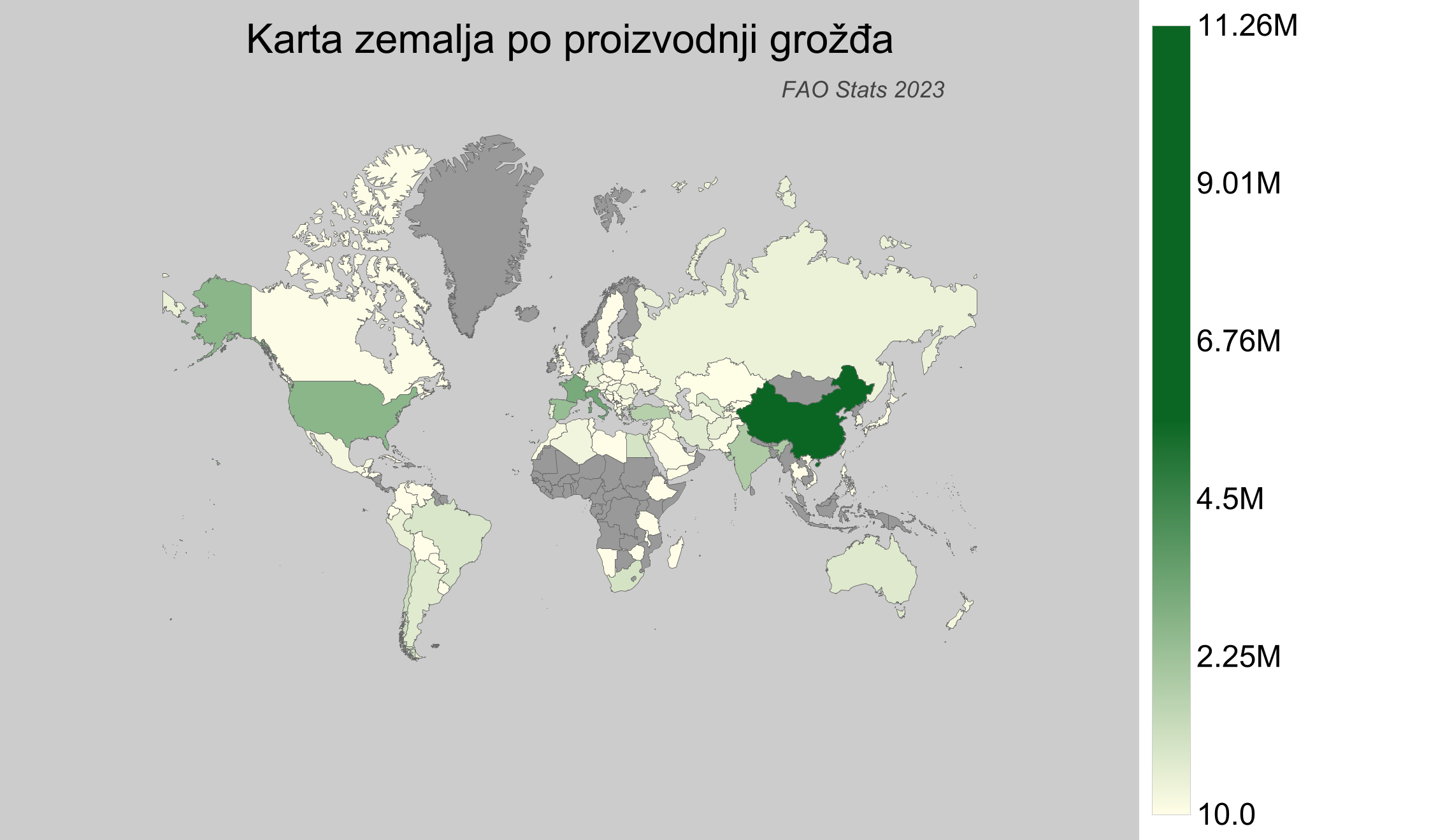 - Kina: oko 11 milijuna tona, najveći svjetski proizvođač grožđa.