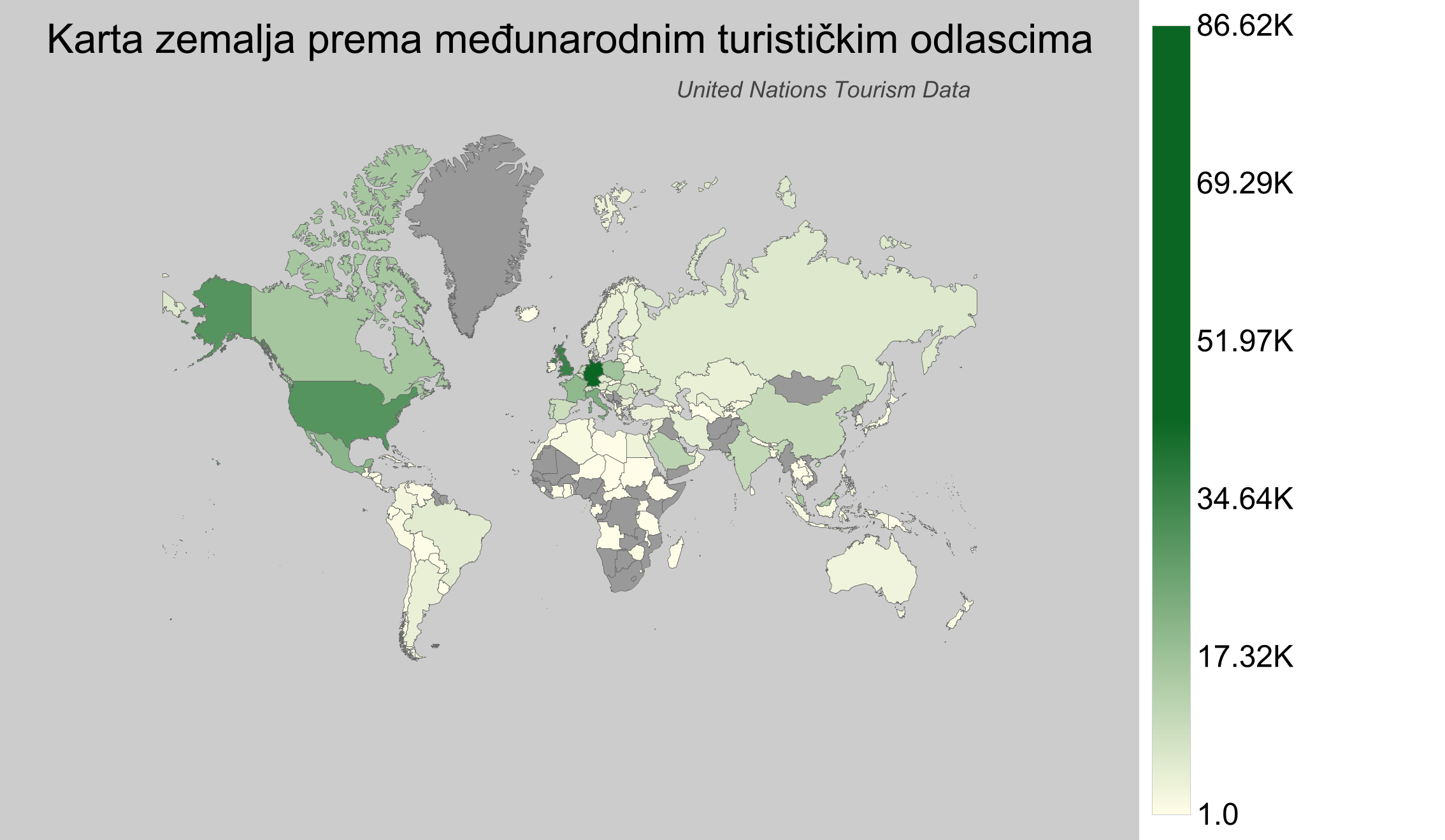 - Njemačka: Oko 86 milijuna međunarodnih odlazaka, Njemačka se ističe zahvaljujući stabilnoj ekonomiji i kulturnoj radoznalosti stanovnika, čime često putuju u razne regije svijeta.
