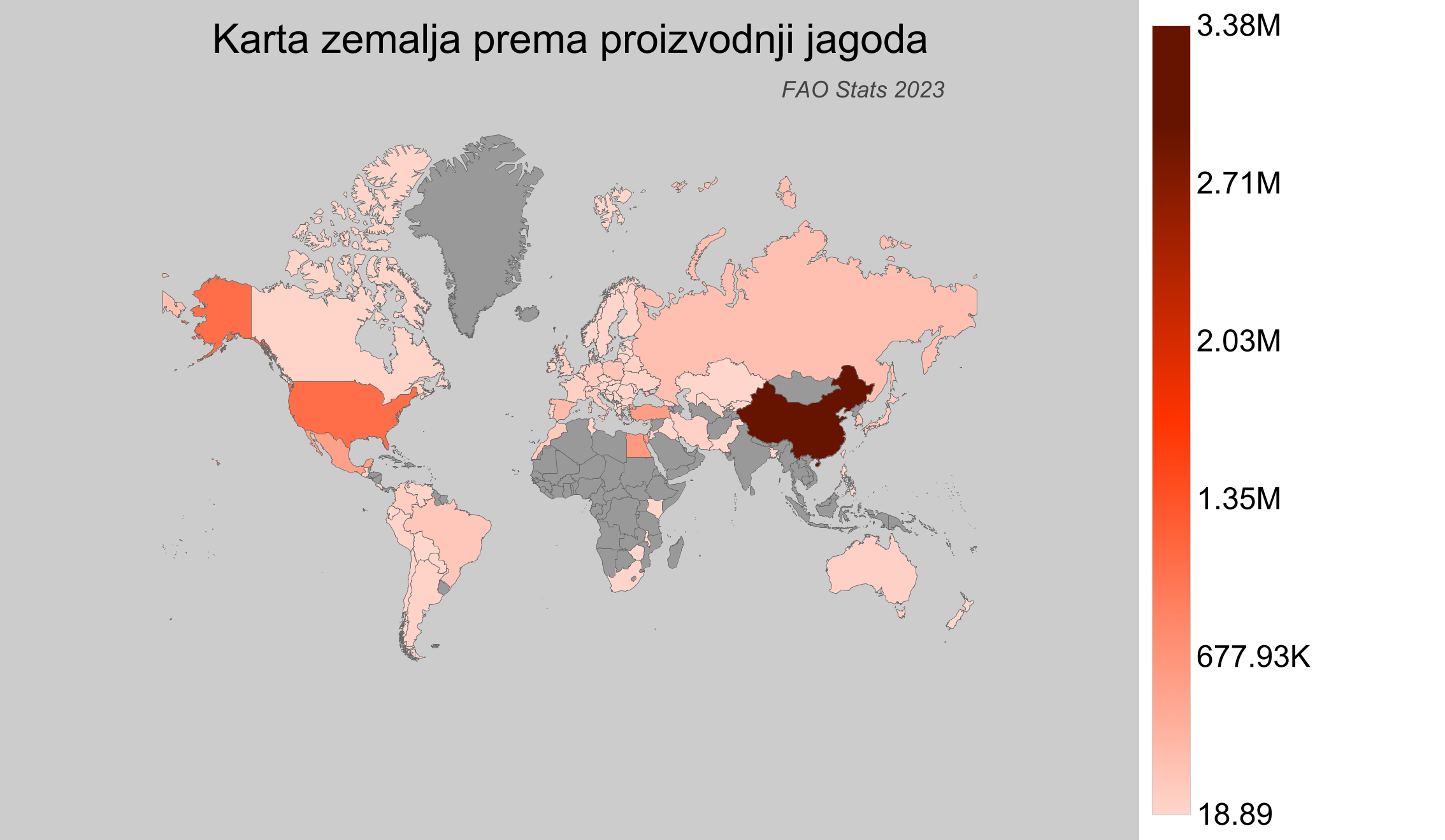 - Kina je najveći proizvođač jagoda, s proizvodnjom od oko 3,4 milijuna tona.